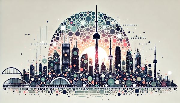 Futuristic Vision of Toronto's Skyline Through Vibrant Circular Motifs
