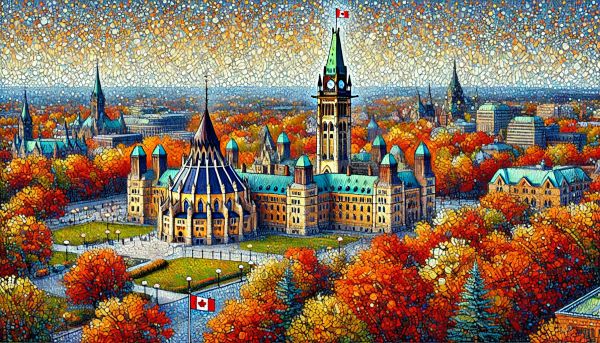 Autumnal Elegance on Parliament Hill: A Neo-Impressionist Masterpiece