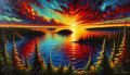 Vivid Sunset at Lake Nipigon: A Canvas of Fiery Hues and Reflections