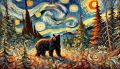 Van Gogh-inspired Black Bear in Vibrant Ontario Forest Landscape