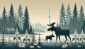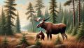 Majestic Moose and Calf Amidst the Ontario Forest Landscape