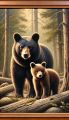 Serene Family Moment: Black Bears Amidst the Majestic Canadian Forest