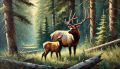 Majestic Roosevelt Elk Amidst Sunlit Ontario Forest