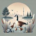Serene Twilight in Toronto: Geese Family by the Lakeshore