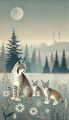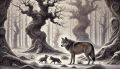 Mystical Winter Forest Scene with Mother Gray Wolf and Pups