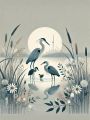 Serene Dawn: Family of Herons by Wetland with Toronto Skyline