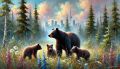 Black Bear Family Against Toronto Skyline: A Nature-Inspired Art Piece