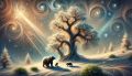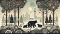 Whimsical Twilight Dance: Trees and Bears Under Starry Skies