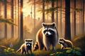 Raccoon Family's Sunrise Stroll Through a Toronto Forest