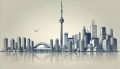 Captivating Minimalist Illustration of Toronto's Iconic Skyline and Waterfront