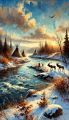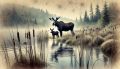 Majestic Moose in Misty Waters: A Vibrant Impressionist Painting