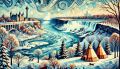 Frozen Elegance: A Winter Vista of Niagara Falls in Artistic Expression