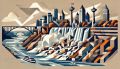 Abstract Geometric Interpretation of Niagara Falls and Urban Landscape