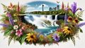 Enchanting Stained Glass Illustration of Thousand Islands Landscape