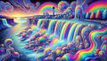 Surreal Rainbow Gradients Transform Niagara Falls into Artistic Fantasy