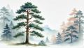 Tranquil Watercolor Vista of Eastern White Pine Amidst Misty Landscape