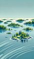 Serene Aquamarine Archipelago: Thousand Islands in Artistic Minimalism