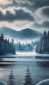 Winter's Serenity: Snow Laden Trees and a Misty Frozen Lake