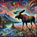 Surrealist Moose amid Swirling Colors in Ontario's Wilderness