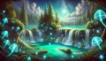 Enchanted Nightfall: Illuminated Waterfalls and Luminous Flora