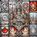 "Decopunk Glass Collage of Ontario’s Urban Landscapes: An Artistic Vision"