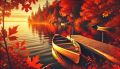 Autumn's Embrace on Lake Ontario: A Canoe Among Fiery Foliage