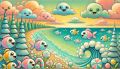 Enchanted Waters: Playful Fish and Smiling Clouds in a Pastel Dream