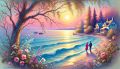 Romantic Stroll by Lake Huron at Sunset in Pastel Hues