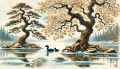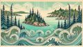 Enchanting Serenity of the Thousand Islands in a Minimalist Illustration