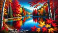Autumn Majesty: Vibrant Maple Trees Reflecting in a Tranquil Ontario Lake