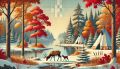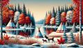 Winter's Embrace: A Snow-Dusted Landscape with Fiery Maple Trees