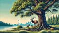 Majestic Tree and Wildlife Against Toronto Skyline at Dawn