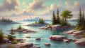 Serene Impressionist View of Georgian Bay with Toronto Skyline