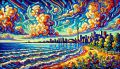 A Surreal Tapestry: Wavy Interpretation of Lake Simcoe at Sunset