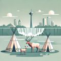 Tranquil Harmony at Niagara: Tipis and Wildlife Against City Silhouette