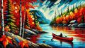Autumn Brilliance on Algonquin Lake: A Canoe Amidst Fiery Foliage