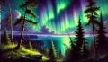 Enchanting Northern Lights in an Art Nouveau Frame Over Lake Superior