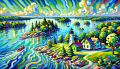 Vibrant Fauvist Interpretation of Thousand Islands Landscape
