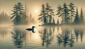 Dawn Breaks Over Misty Lake with Loon and Whispering Pines