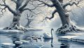 Winter's Grace: A Swan Family Amidst Frosted Ontario Trees