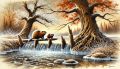 Autumn Splendor: Snowshoe Hare Mother and Leveret in Vibrant Canadian Landscape