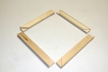 The ready-to-assemble stretcher bars are easy to assemble via a tongue and groove joints. They are joined together when connected and you do not need special tools to make the frame. These stretcher bars only come in two depths and are limited in length. If you are thinking of ordering this type of stretcher bar, please make sure you have all the necessary tools and equipment to assemble the frame.  Order online: Pre-cut stretcher bars, unassembled. Custom-made stretcher bar frames.