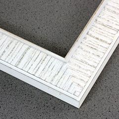This 1 5/8 " Distressed/Aged White frame features vertical texture along the profile, with black finish.