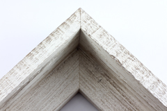 This large profile floater frame features rustic, natural wood texture with an antiqued white finish.