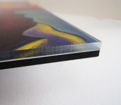 • High quality acrylic glass. The crystal clear cover (or glazing) consists of a 3 mm thick, top grade acrylic sheet, cut exactly to size. The edges are neatly routered for sharp corners that are smooth to the touch. Reflection in the space between the print and the glazing is eliminated - because there is no space - so light reflects differently than it does on a framed image. The print appears sharper, and has an almost three dimensional effect.